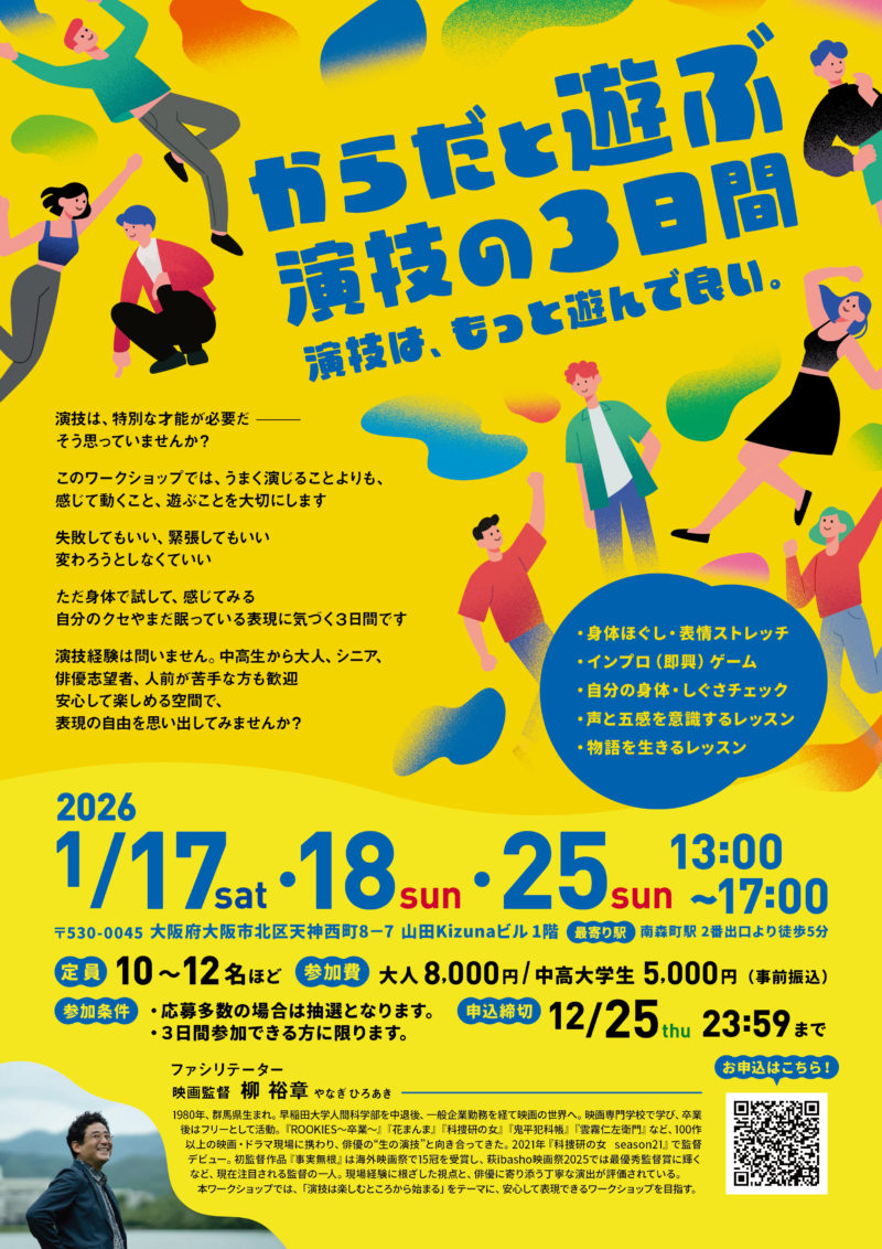 【柳監督ワークショップ開催のお知らせ】『からだと遊ぶ 演技の3日間』参加者募集!
